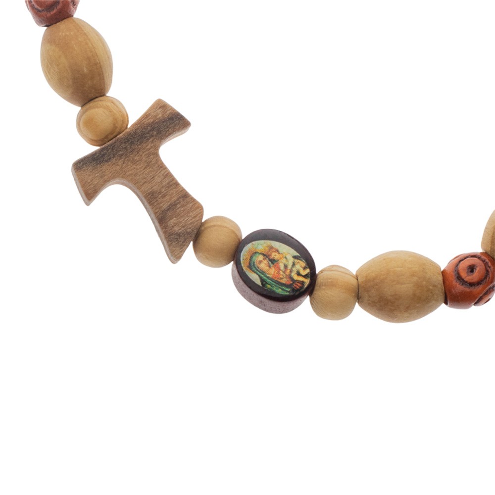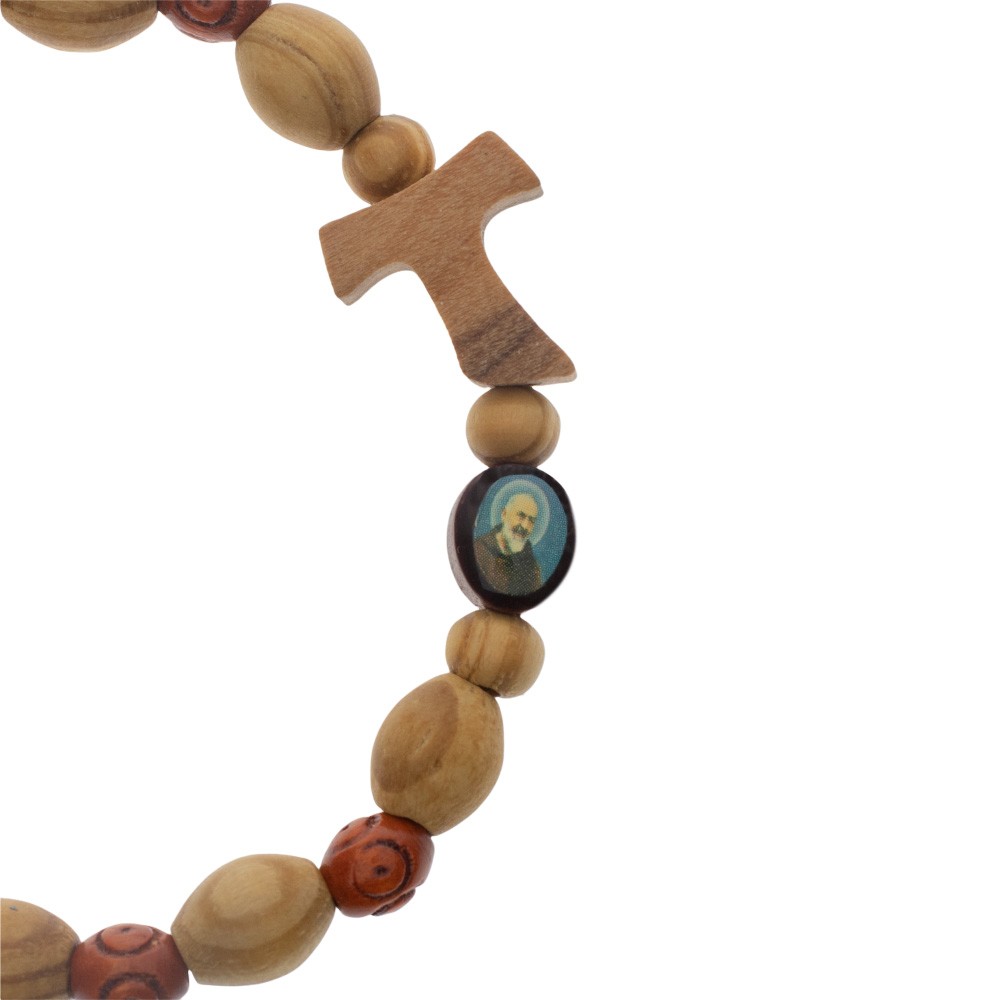 Wooden bracelet with tau cross and medal of Father Pio.