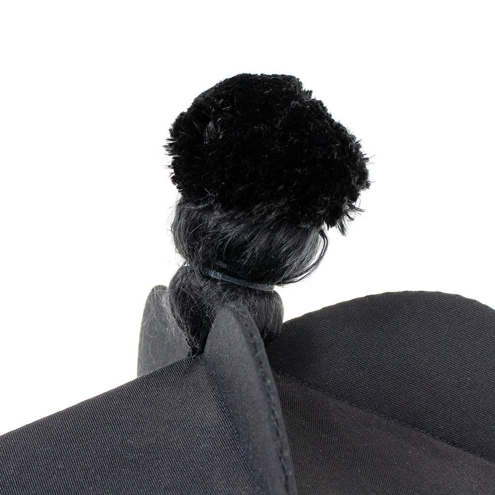 Black four-horn biretta with black pom-pom, available in sizes 54 to 62.