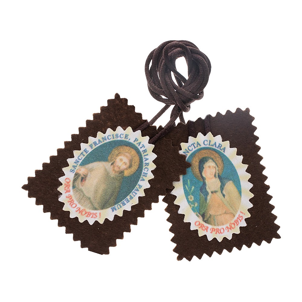 Guaranteed Shipping in 24-48 hMade of brown fabric with colored image of Saint Francis.