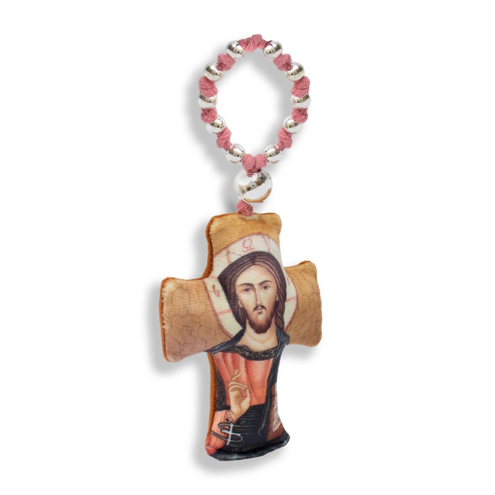 STRINGILA collection. Single decade rosary with cross-shaped pillow depicting Christ Pantocrator.