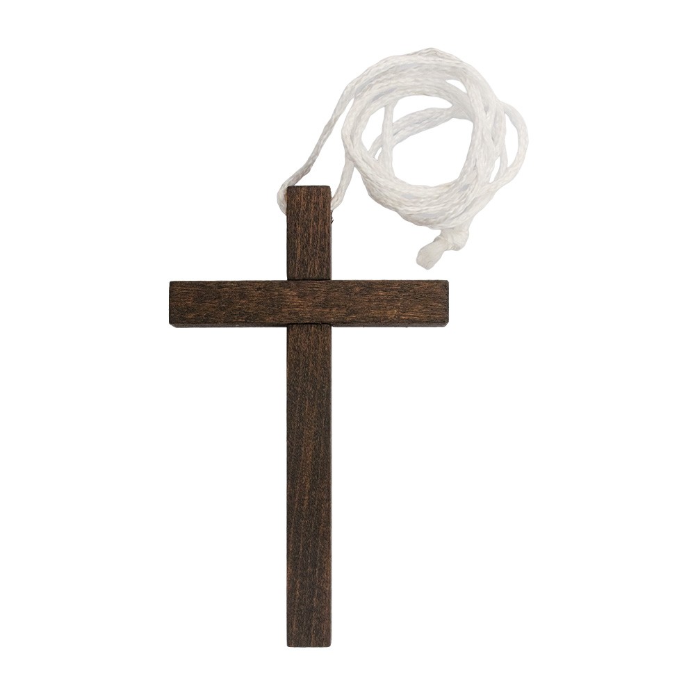 L'offerta prevede una confezione di 100 croci in legno marrone da indossare sulla tunichetta per la Prima Comunione.