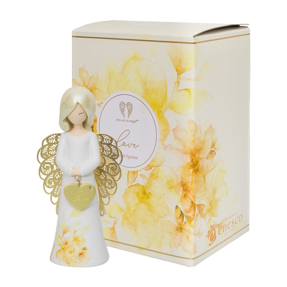 LOVE Angel statue with heart and “LOVE” YOU ARE AN ANGEL with writing “LOVE”