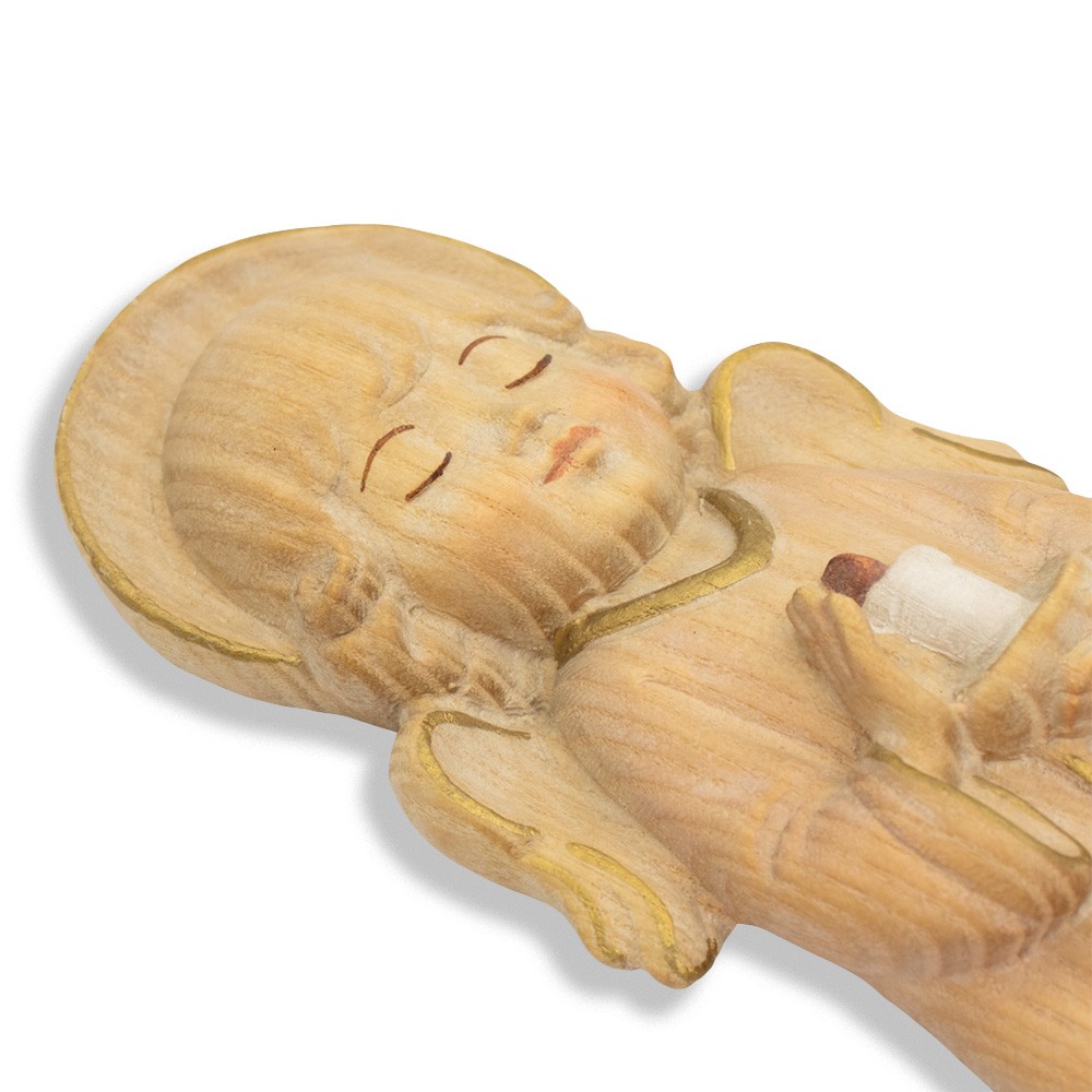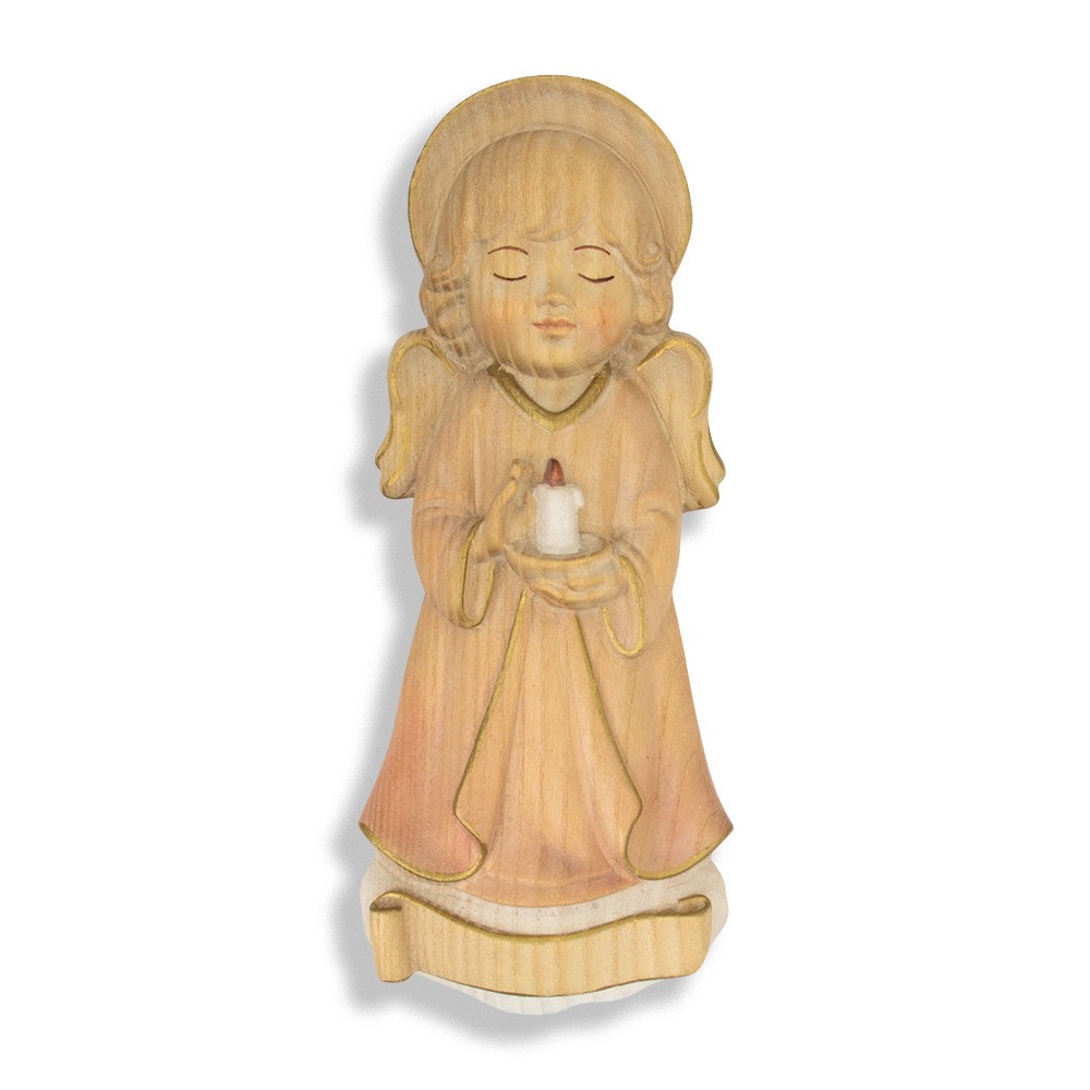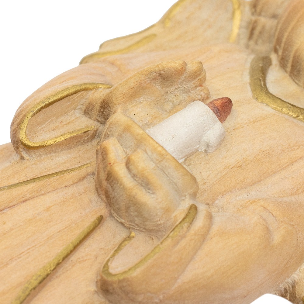 This wonderful wall sculpture represents an angel with candle in his hands, wearing a pink tunic with golden hems.
