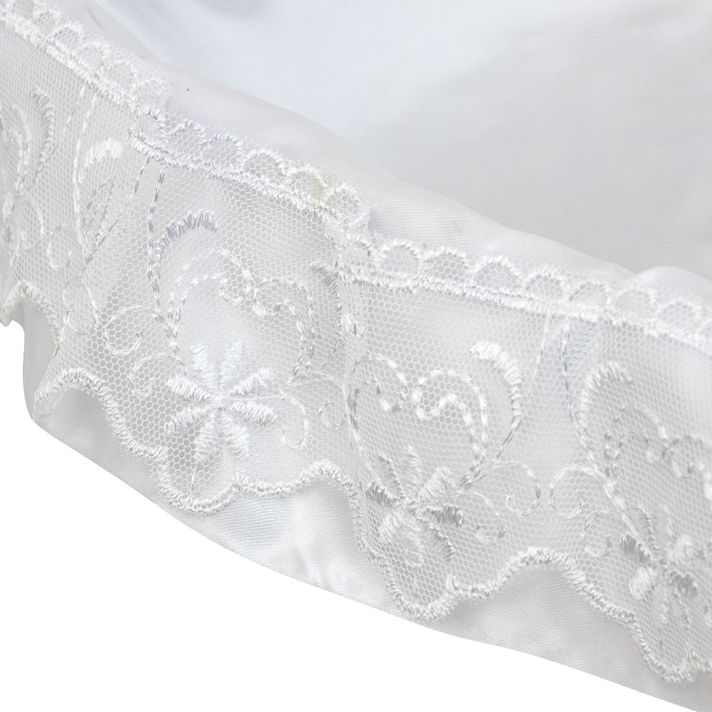 Shipping in 2 weeksThis handcrafted wicker cradle is lined with shiny satin and delicate lace.