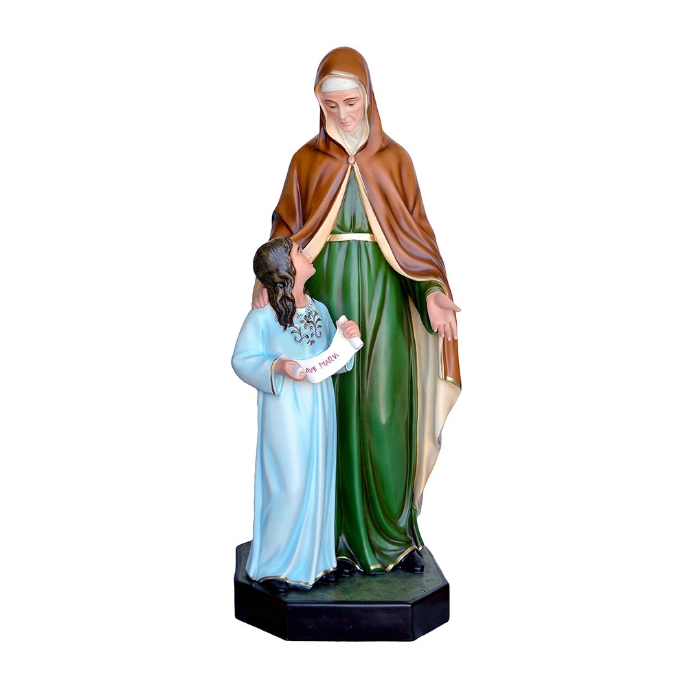 Statue of Saint Anne entirely made of fiberglass and handpainted with acrylics and oil paints, which convey special beauty to the product. This statue is 140 cm tall.