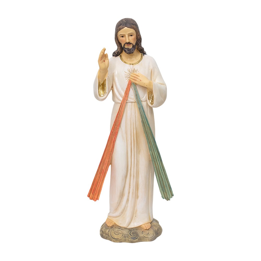 Statue of Merciful Jesus entirely made of colored resin. Height: 30 cm.