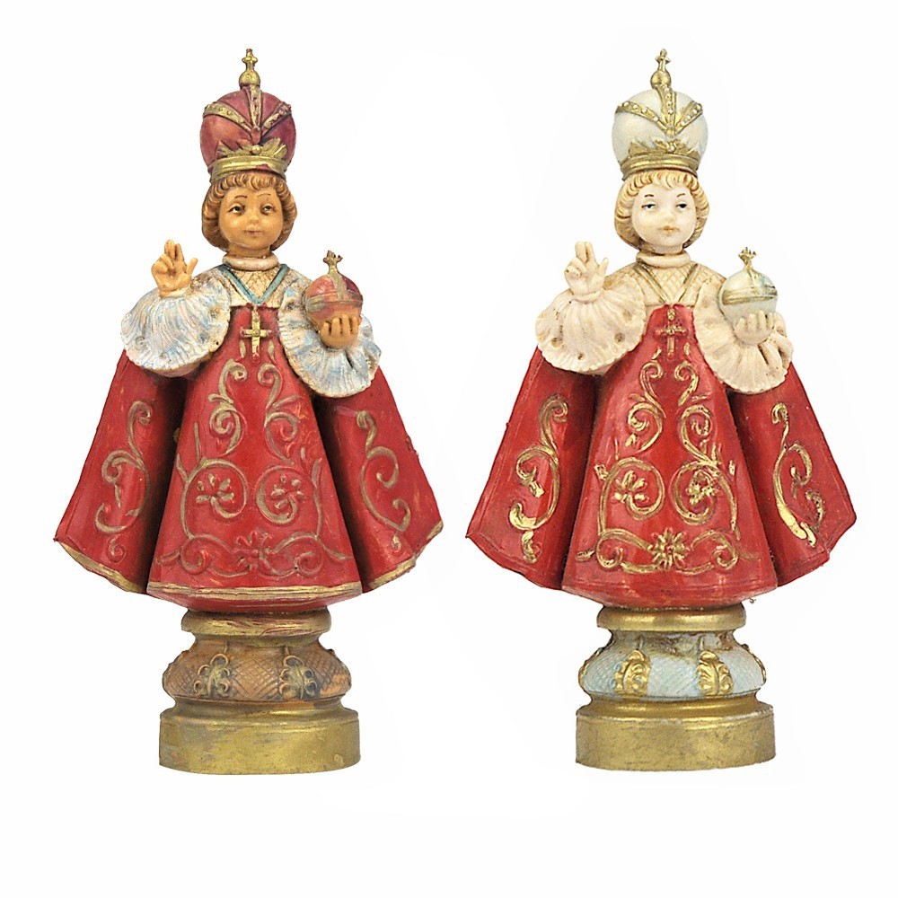 Statue of Baby Jesus of Prague. This statue is available in the following color tones: wood type and porcelain type. Finely handpainted.