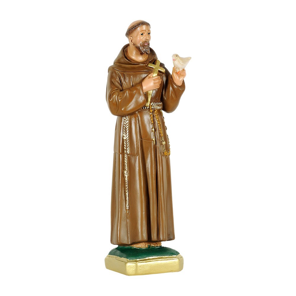 Plaster statue depicting Saint Francis of Assisi with a dove.