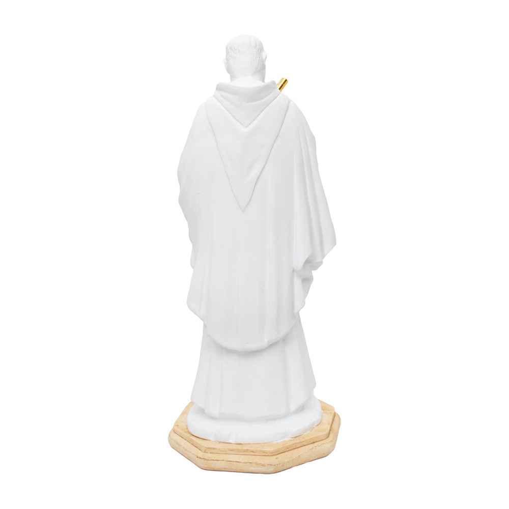 Carlo Acutis Resin statue, 30 cm tall, with round base and “CARLO ACUTIS”.