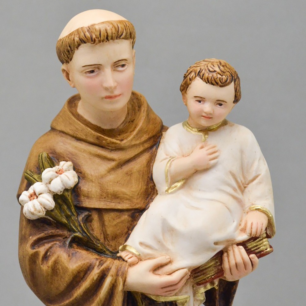 Precious statue os Saint Anthony of Padua made of resin, handpainted with care to every detail. Boxed. Made in Italy.