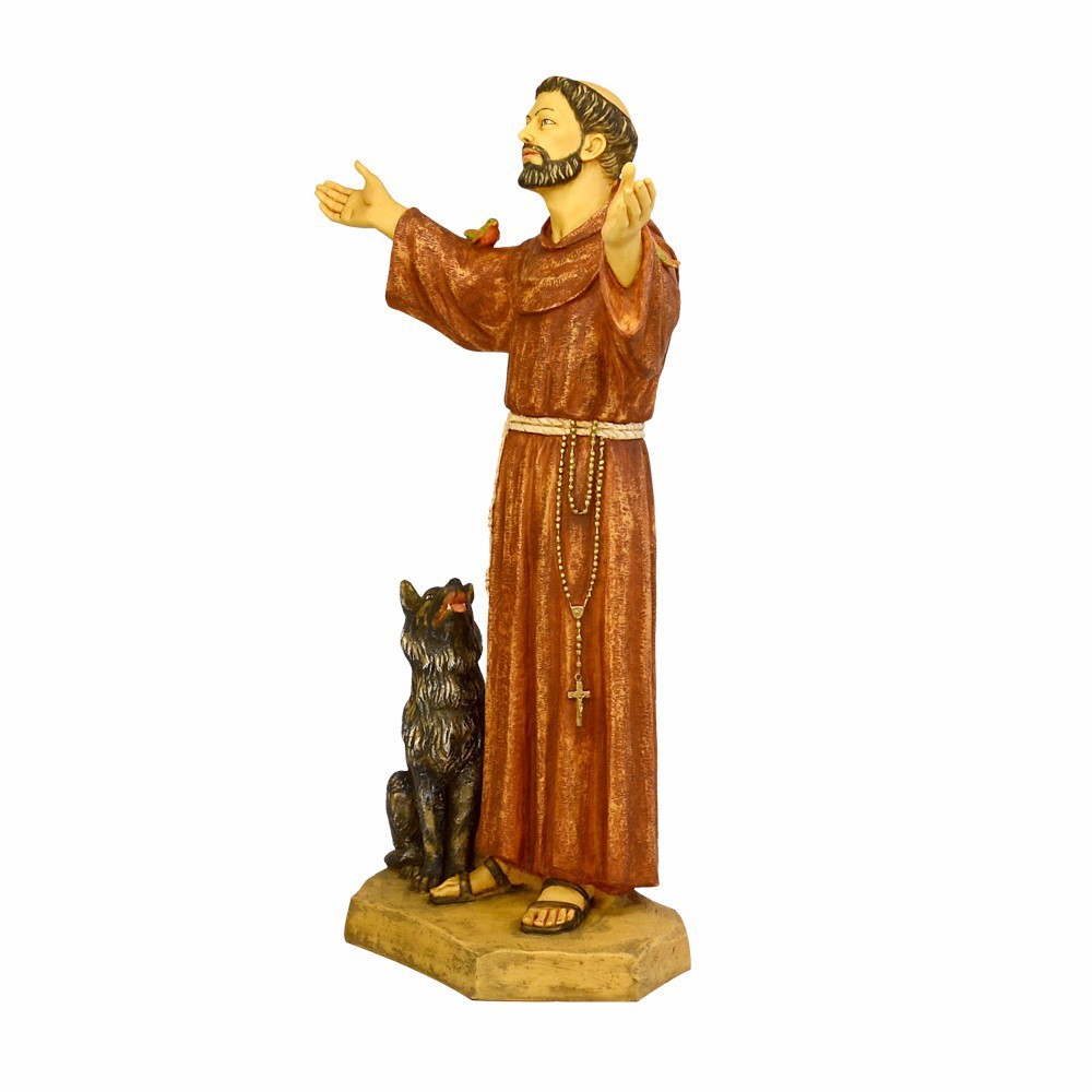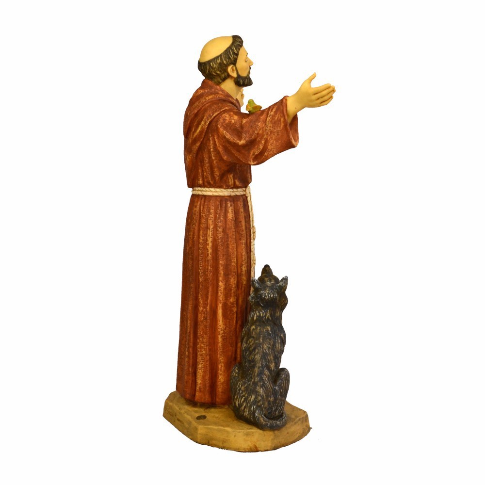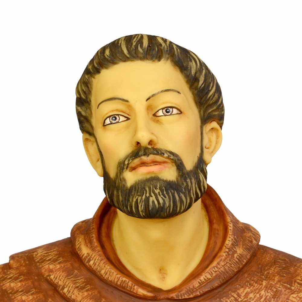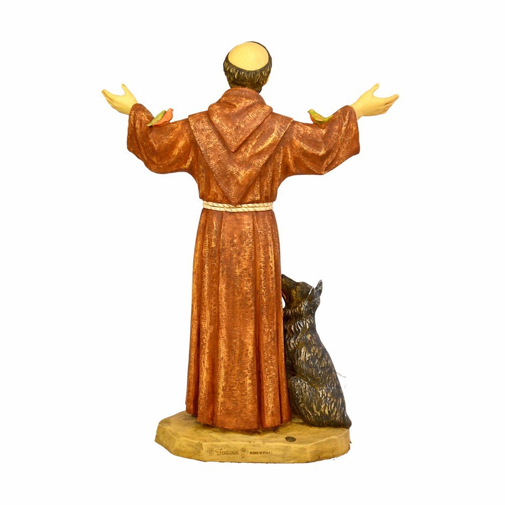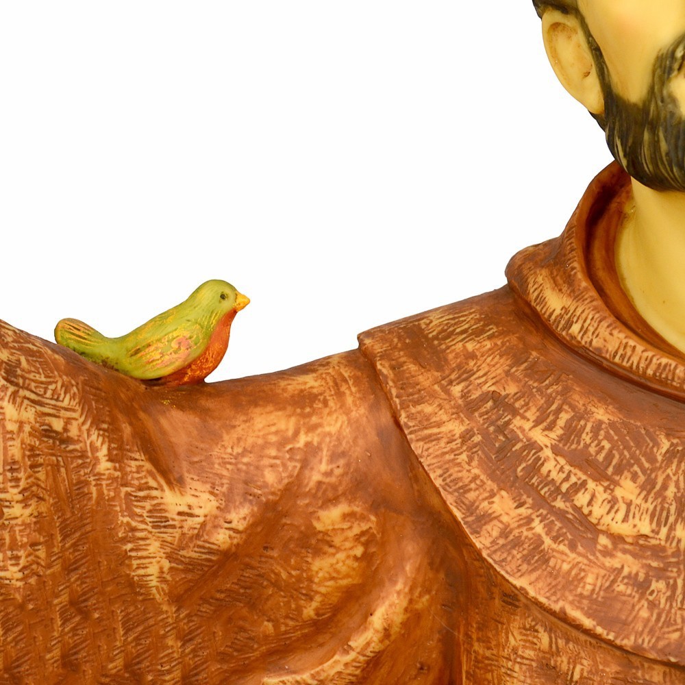 Statue of Saint Francis Of Assisi made of resin. Entirely handpainted. This statue is produced in Italy by the Fontanini company. Excellent quality product. This statue is 105 cm tall.