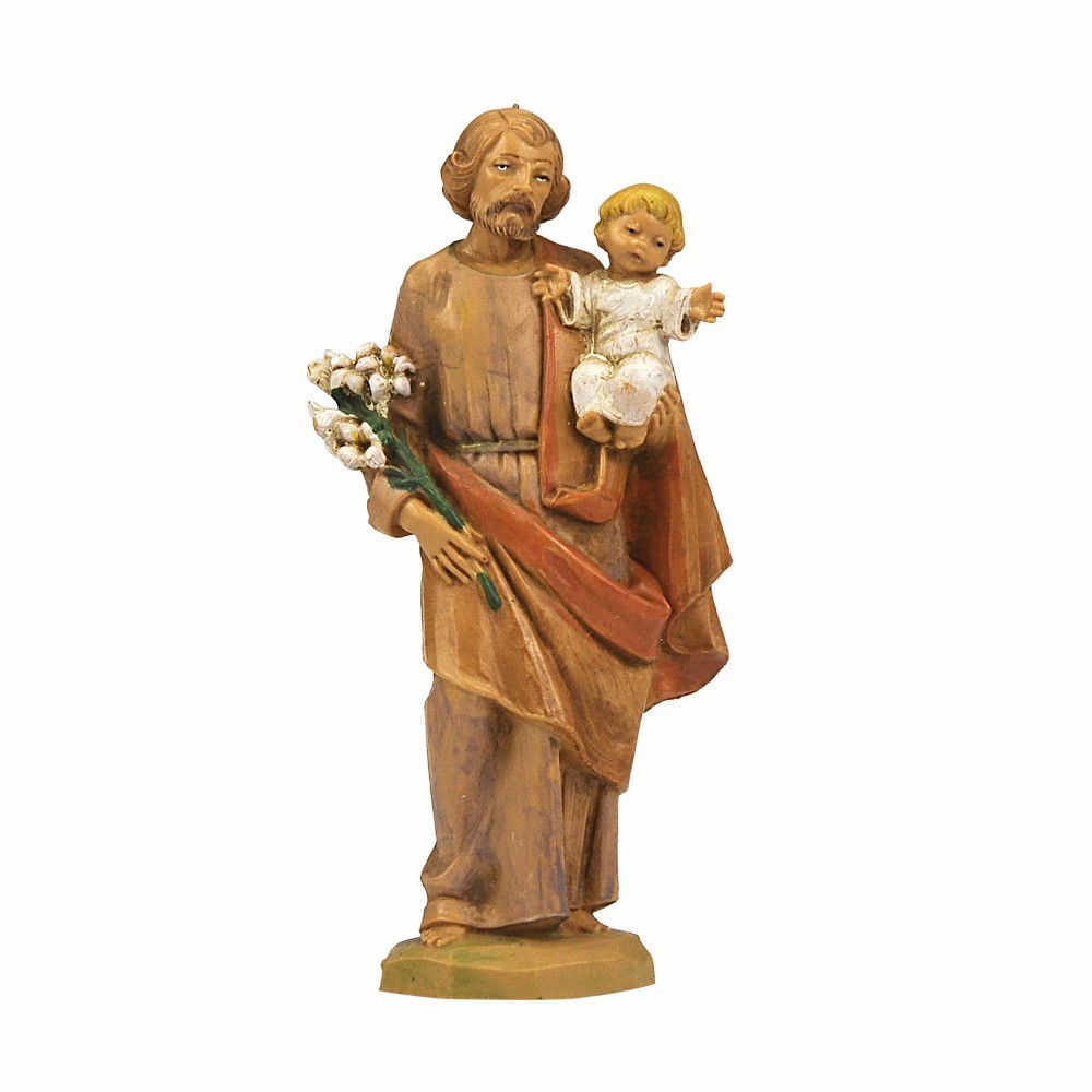 Statue of Saint Joseph with baby in his arms, entirely made in Italy by the Fontanini company. Height: 11 cm.
