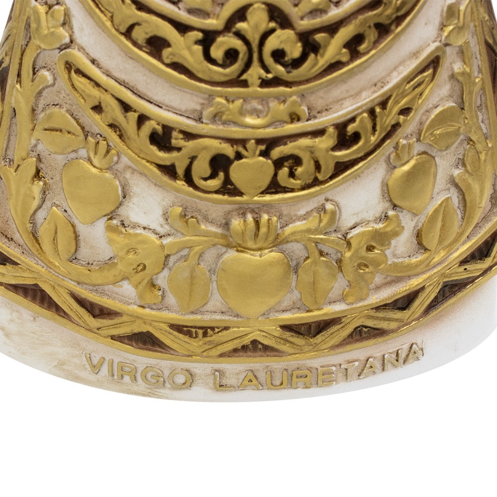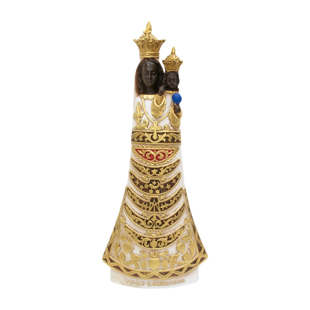 This statue is 39 cm tall and 16.5 cm wide. The base has a size of 14x6 cm and features an embossed “VIRGO LAURETANA” writing.