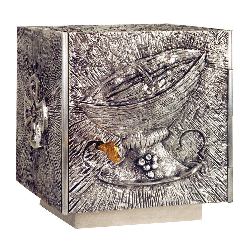 This altar tabernacle is entirely made of bronze with silver plating. Complete with internal light and highly resistant safety lock.