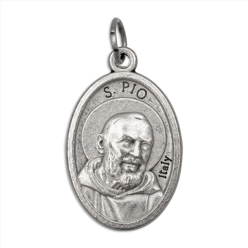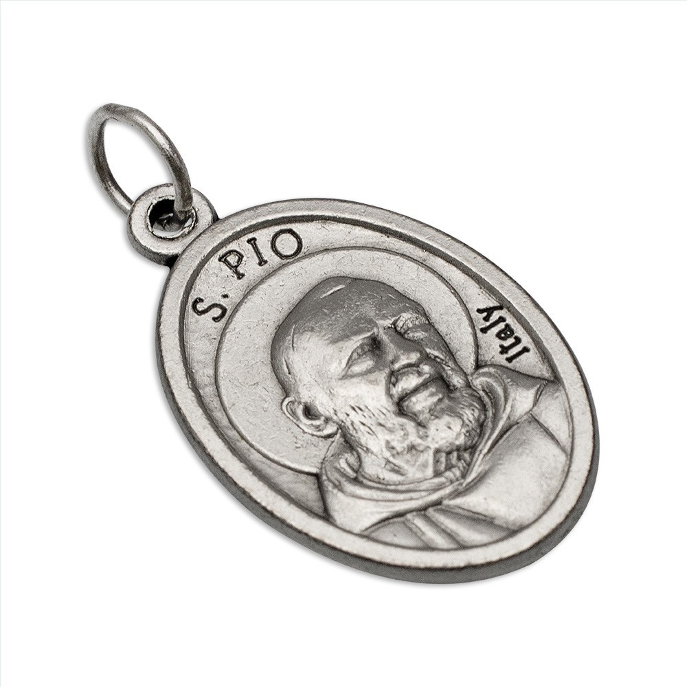 Made of aluminium and silver-plated brass with image of Saint Pio.