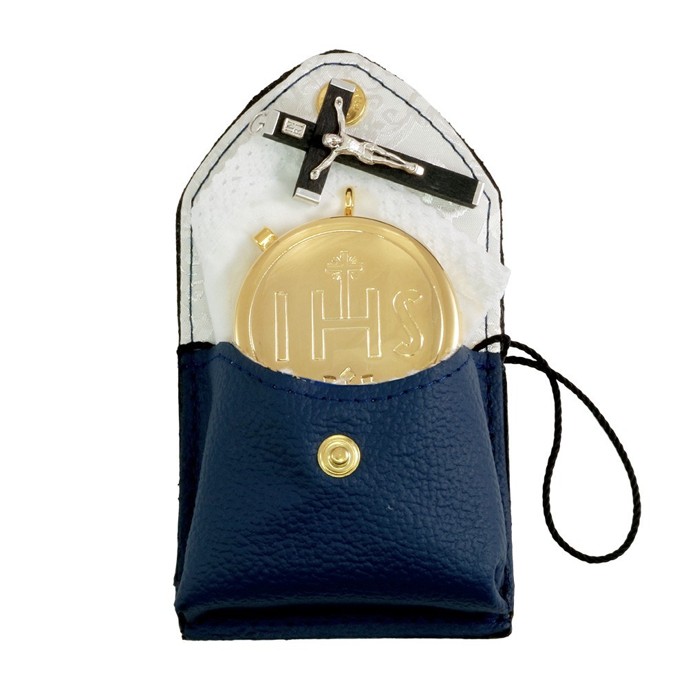 Travel bag for priests. The bag is made of real leather and features a cord. Size: 8x9 cm. Product of excellent quality entirely made by an Italian company with great experience in the manufacturing of religious items.