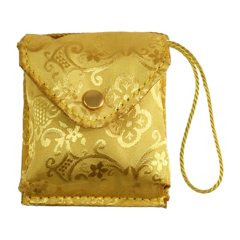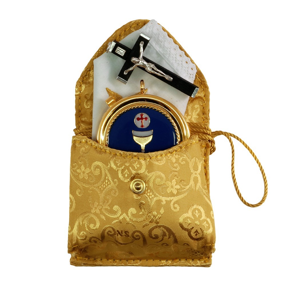Satin travel bag with pyx, cross and purifier.