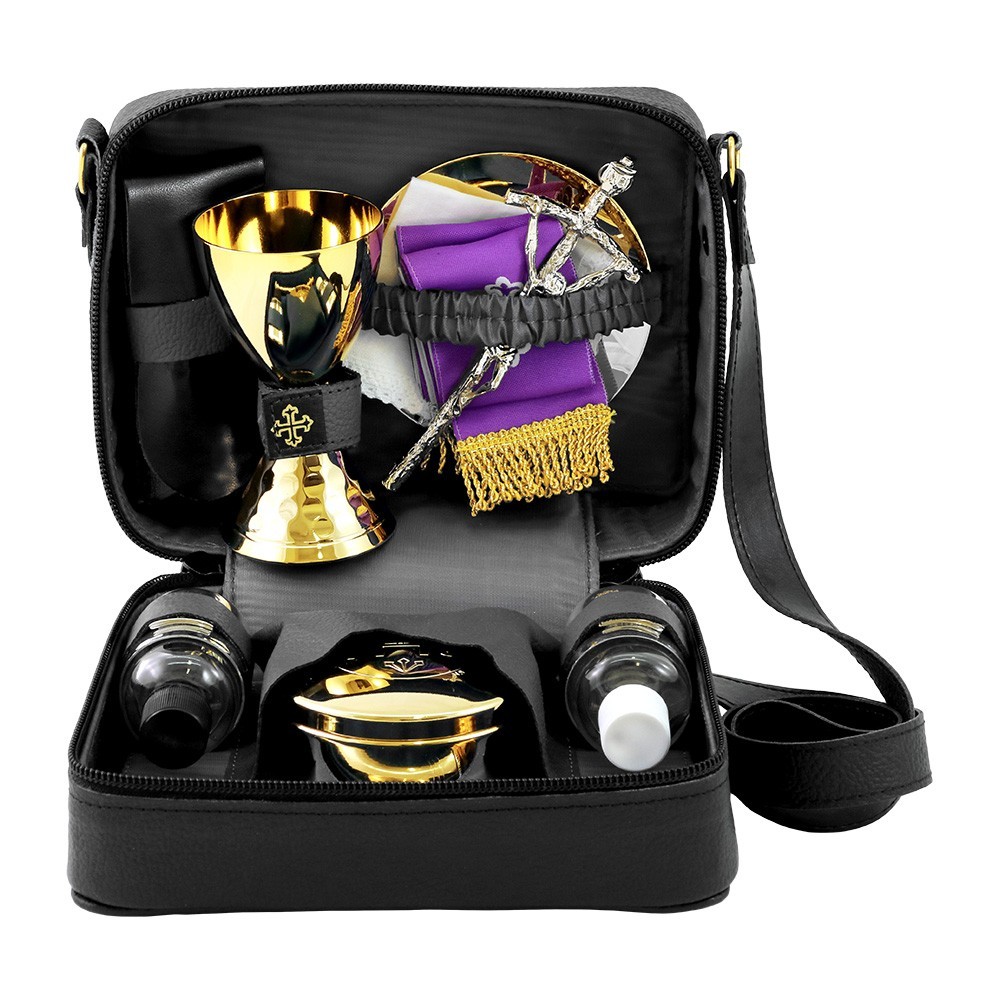 Viaticum case complete with brass pyx, cross and purifier. Size: 8x9 cm.