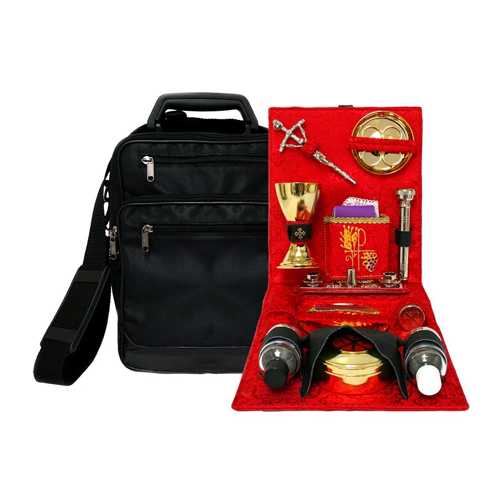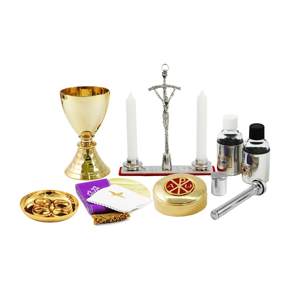Viaticum case complete with brass pyx, cross and purifier. Size: 8x9 cm.