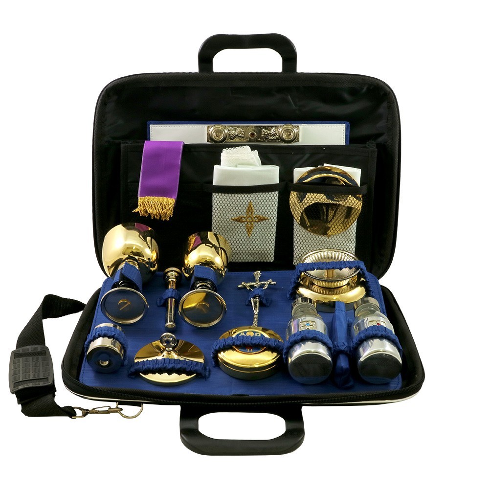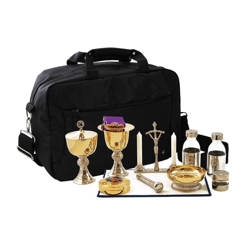 Tiny backpack in fabric with pyx, cross and purificator on the inside.