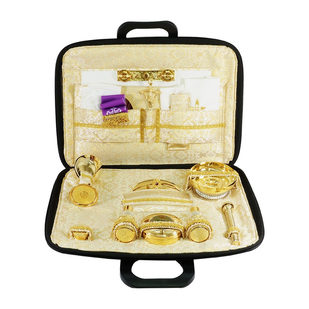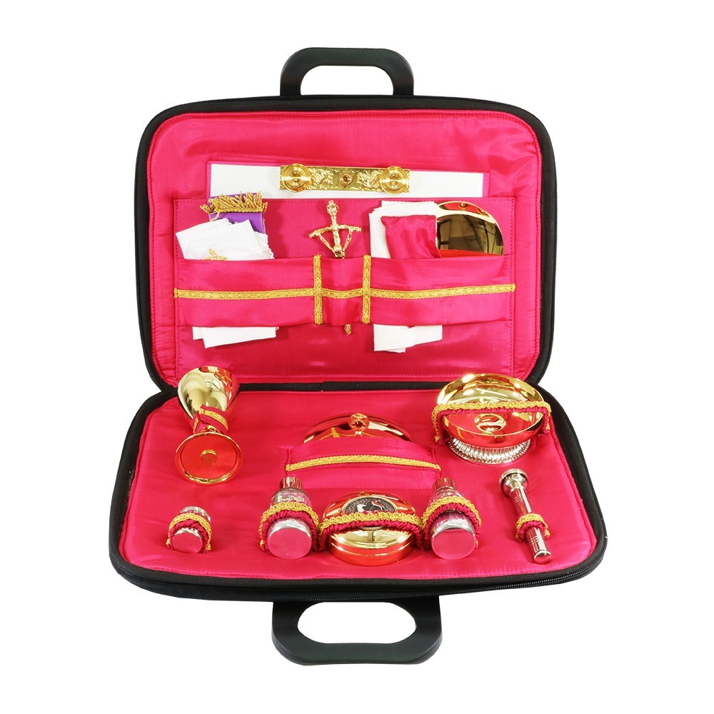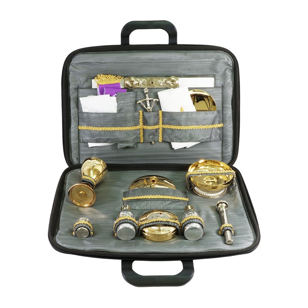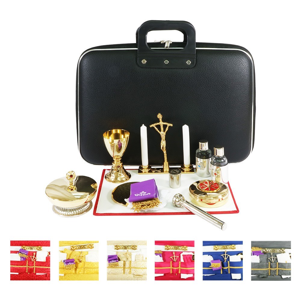 Mass kit suitcase with liturgical book cover.