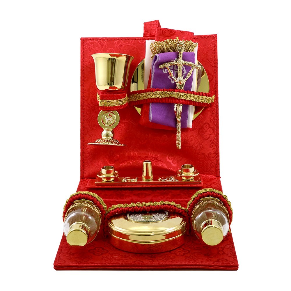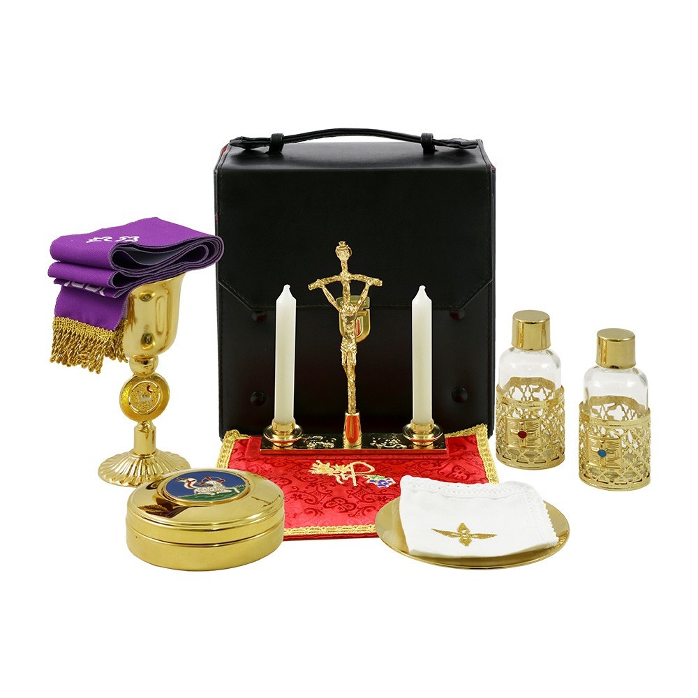 Mass kit suitcase with liturgical book cover.