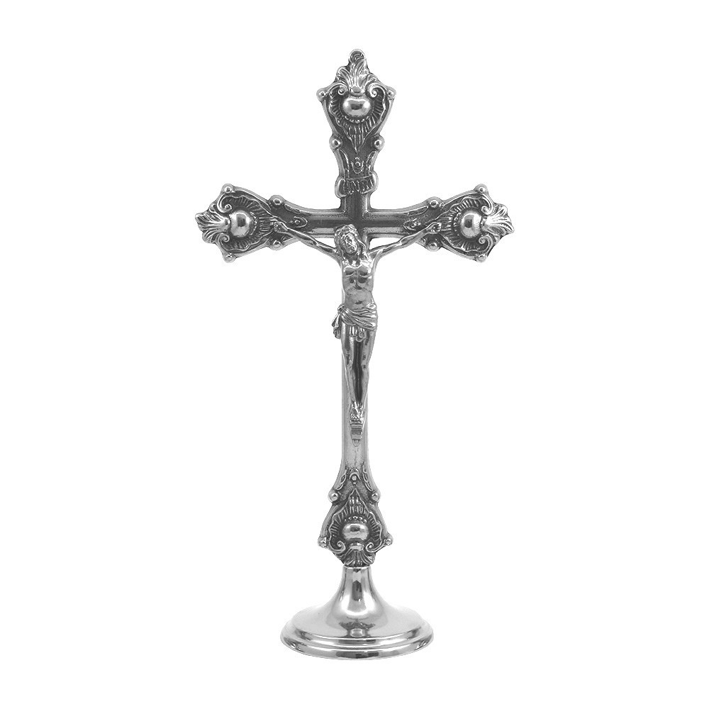 Altar crucifix in silver-plated brass. The cross is finely worked and is 36 cm tall.