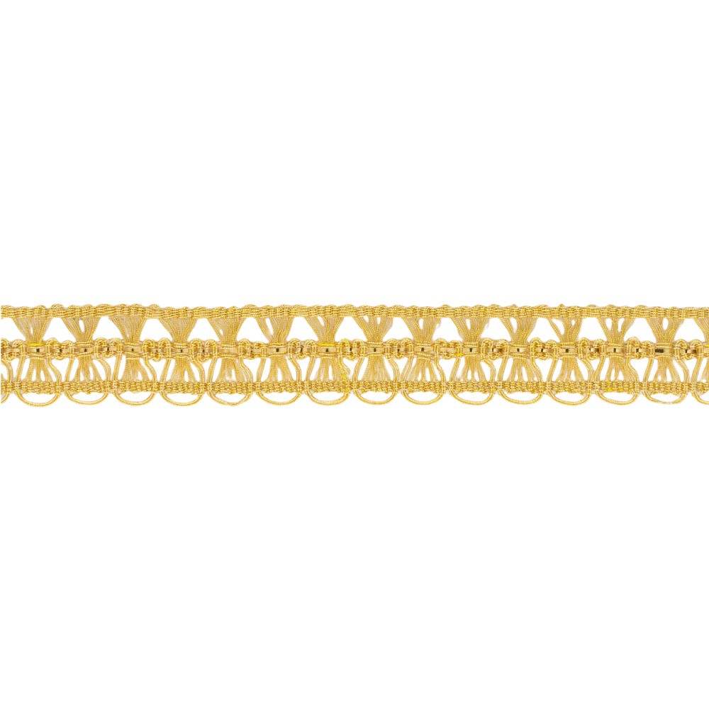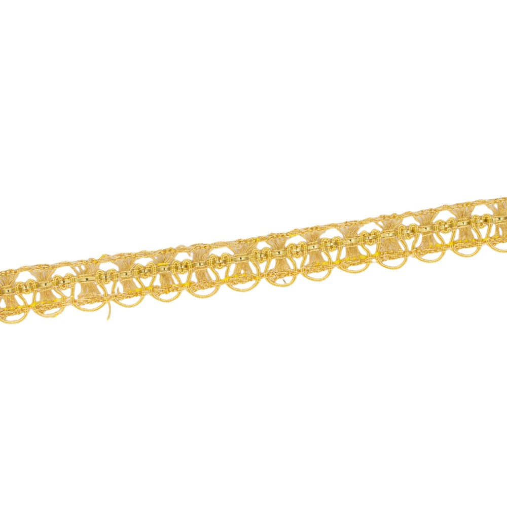 Elegant passementerie of gold color. Ideal to enrich processional umbrellas, canopies, altar linens and liturgical vestments of any kind.
