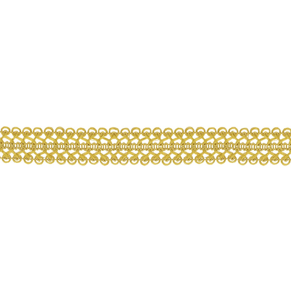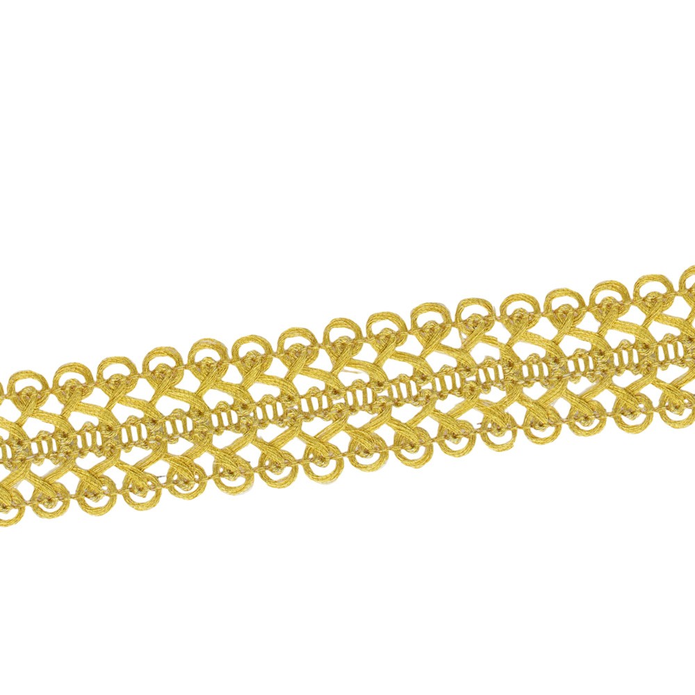 Border trim of classic gold color; embroidery with curly pattern. Height: 3 cm.
