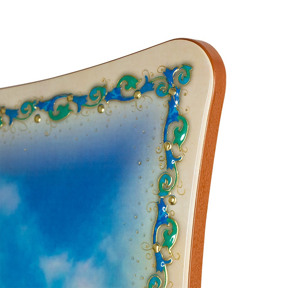 Picture of Our Lady Of Soccorso (Rescue), also called “Black Madonna”, patron saint of the city of Sant Severo. This shaped picture is made of glossy polymer and features a frame with relief decorations. Complete with a metal hook for hanging. Made in Italy.