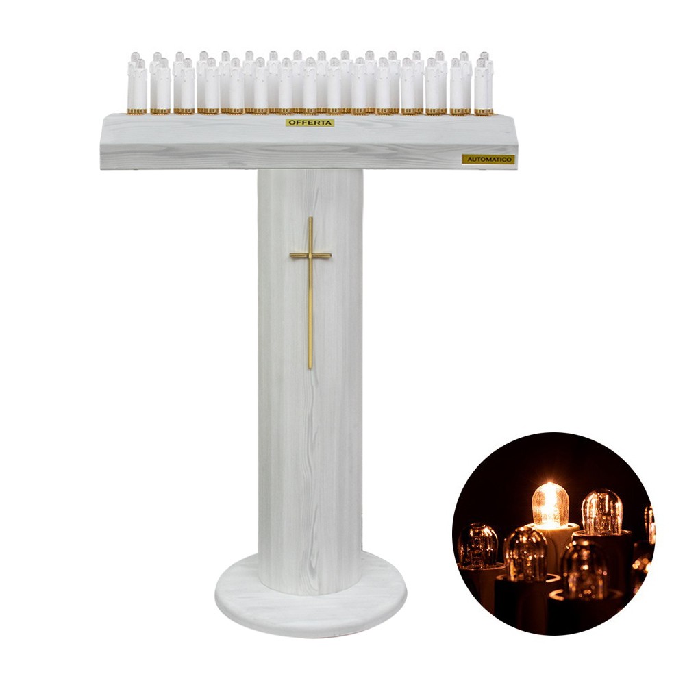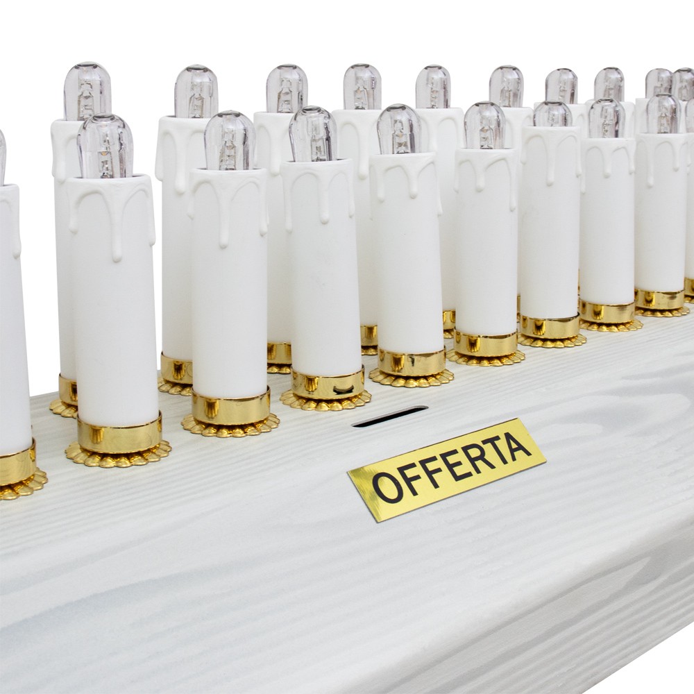 Electric votive candle stand with 31 LED candles and safe donation box.