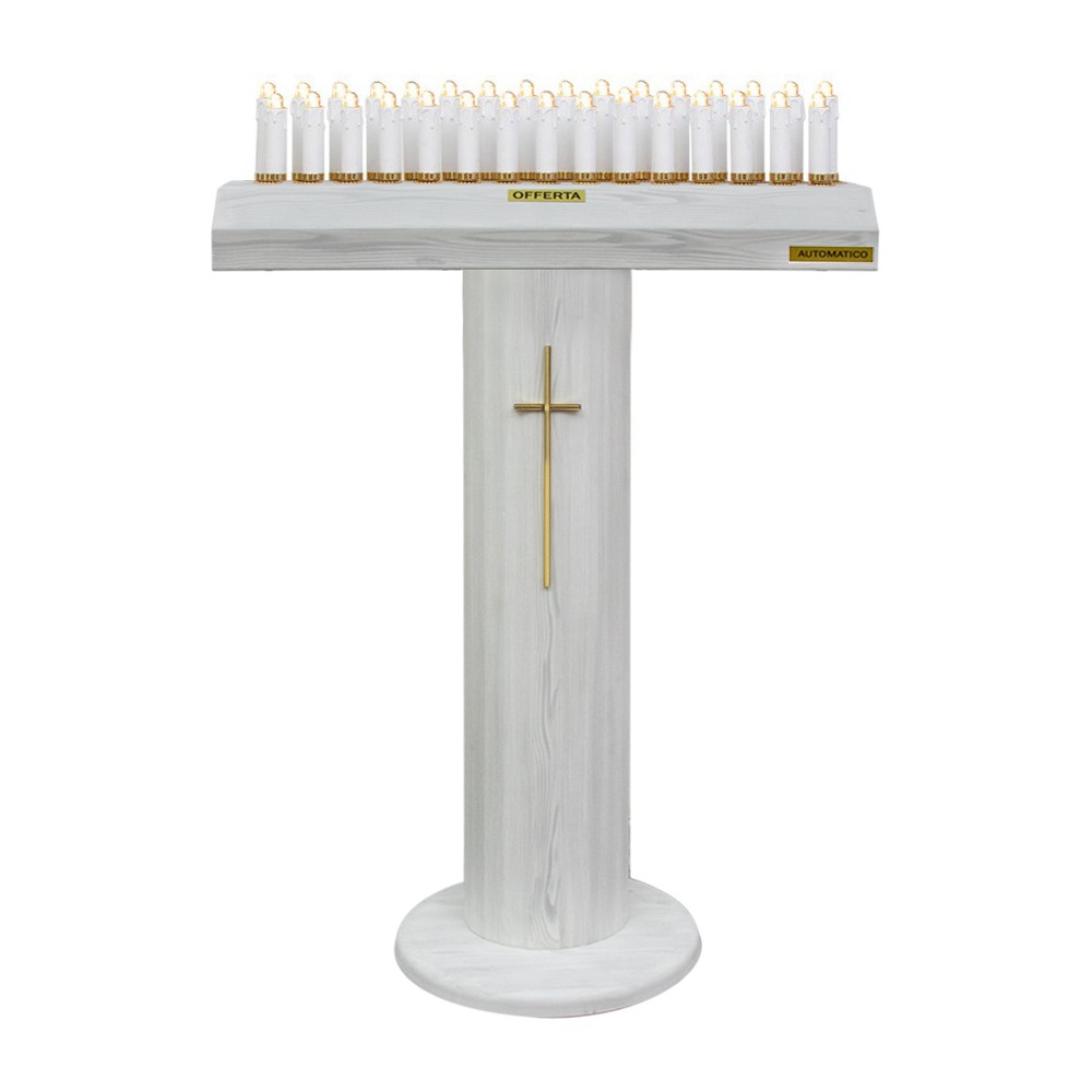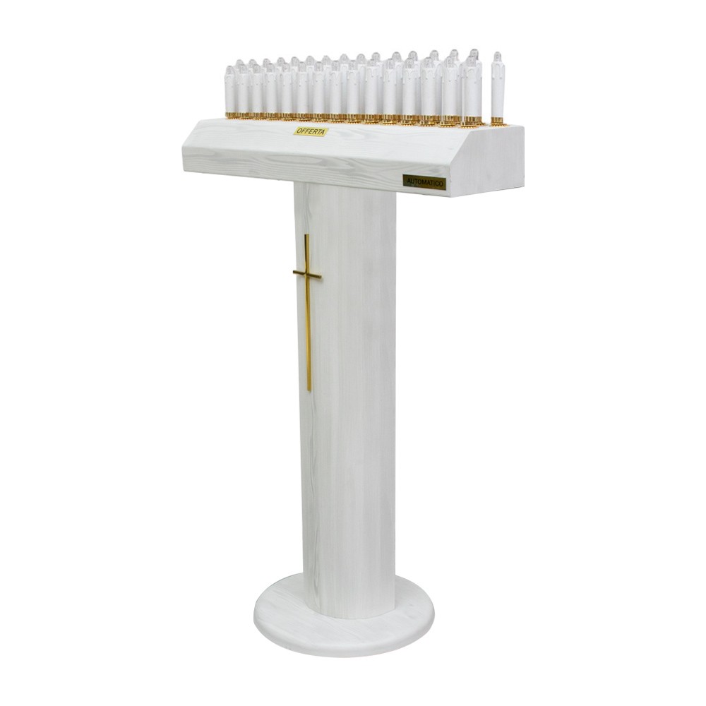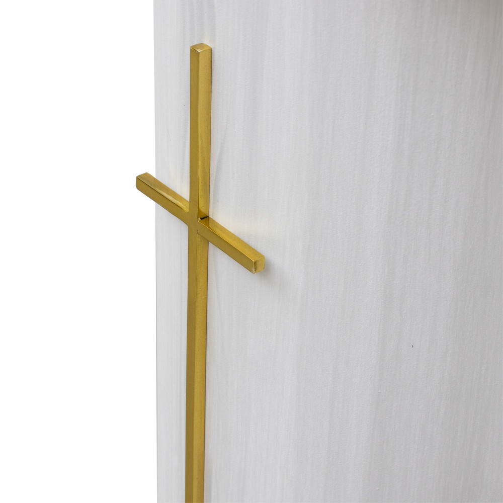It is made of enameled white metal and has a decorative cross in the middle of the column.