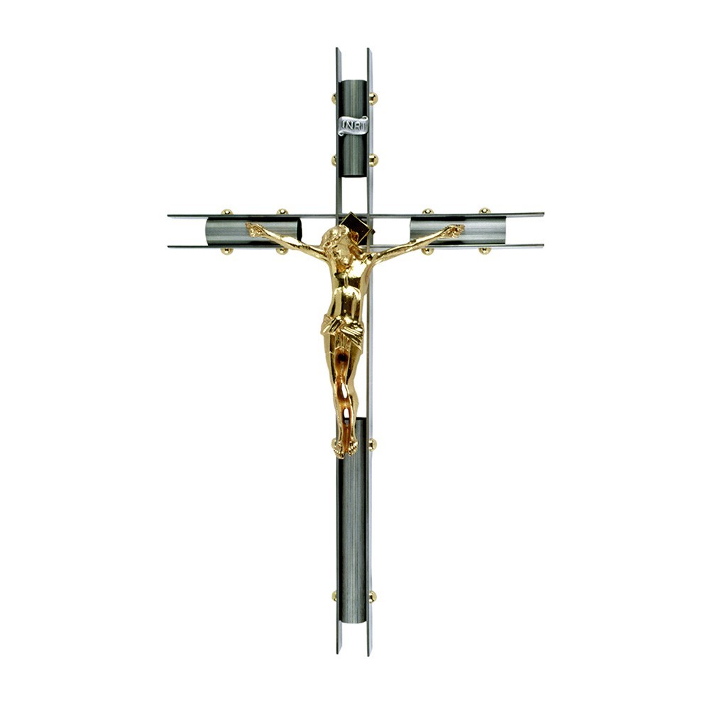 Wall crucifix in bicolor brass. Size: 45.50x30 cm.