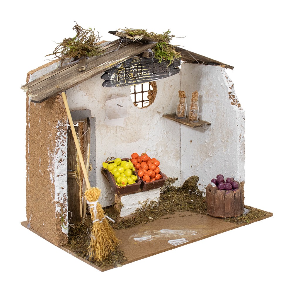 Fruit shop, proportional to Nativity scene’s figures with a maximum height of 8 cm.