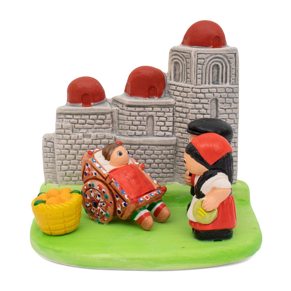 Peruvian nativity scene in semi glazed ceramic from the “world nativity scenes” collection. It depicts the Sicilian nativity.