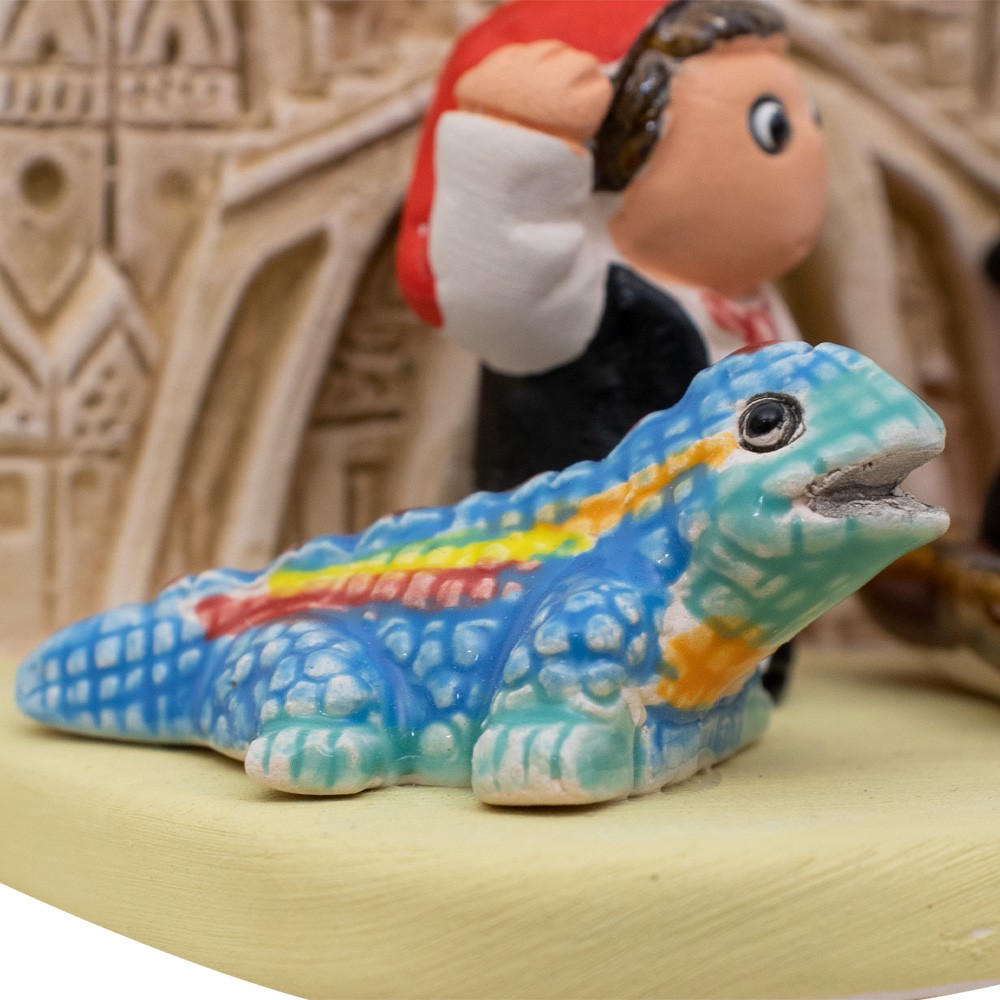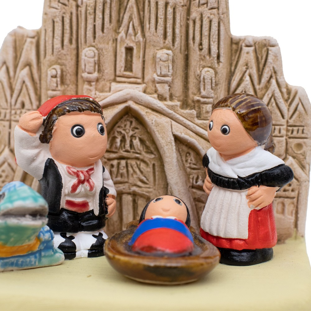 Small handcrafted nativity scene with Barcelona depiction, designed for the world nativity scenes collection.